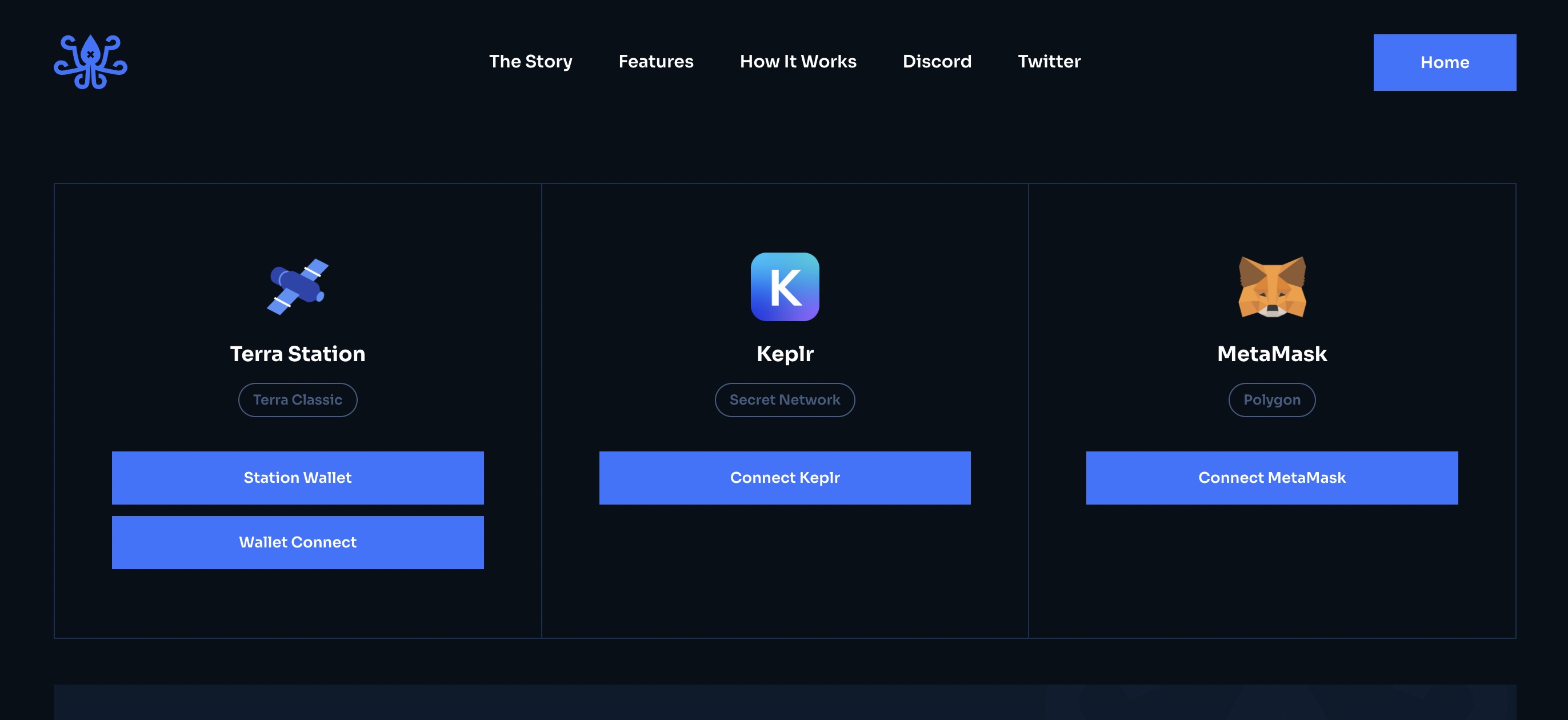 If you're connecting via Keplr you need to also import your NFTs from Secret Network. This is because of the privacy-by-default mechanics of Secret Network. Once you have connected your Keplr wallet, click the 'Import NFTs' button to whitelist our NFT checker address so we can see what NFTs you have in your wallet. If you don't do this step, you won't be able to see your Secret Network assets in the game.
